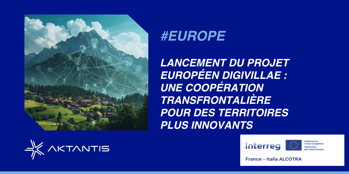 AKTANTIS est partenaire du projet transfrontalier Digivillae, financé par le programme européen Interreg ALCOTRA 2021–2027 pour une durée de 30 mois. Coordonné par la Fondazione Piemonte Innova, le partenariat réunit également l’Unione del Fossanese, ANCI Liguria et l’Unité des Communes valdôtaines Mont-Rose.