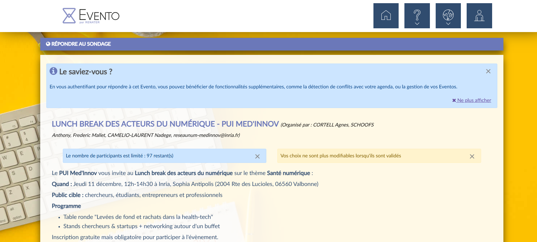 Le PUI Med’Innov vous invite au Lunch break des acteurs du numérique sur le thème Santé numérique le 11 décembre 2025.