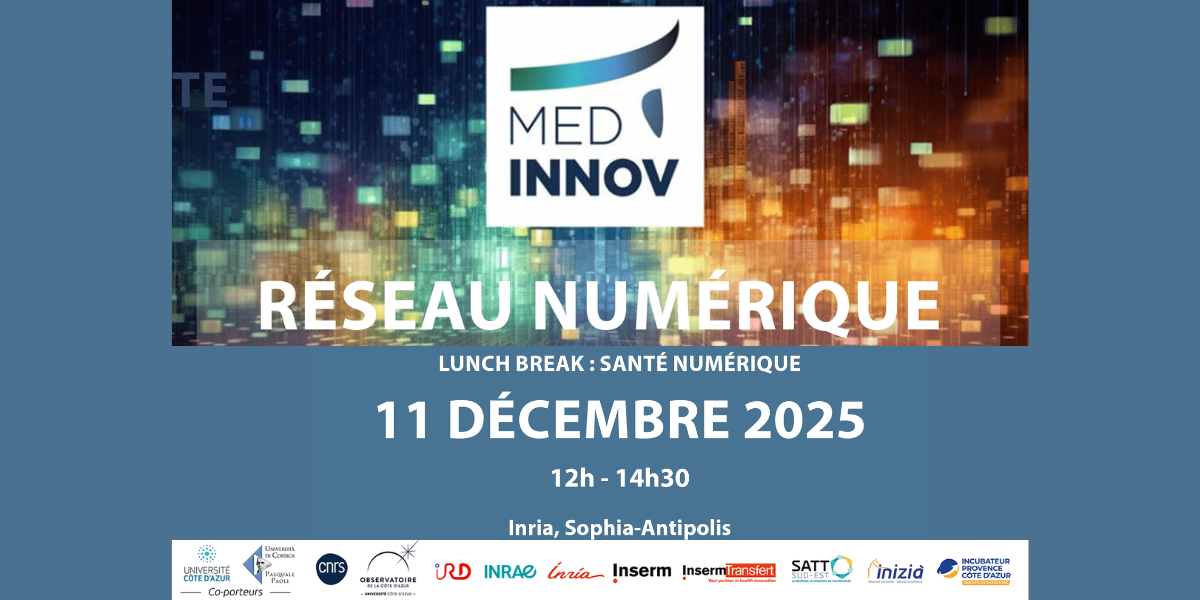 Le PUI Med'Innov vous invite au Lunch break des acteurs du numérique sur le thème Santé numérique.Quand : Jeudi 11 décembre, 12h-14h30 à Inria, Sophia Antipolis (2004 Rte des Lucioles, 06560...