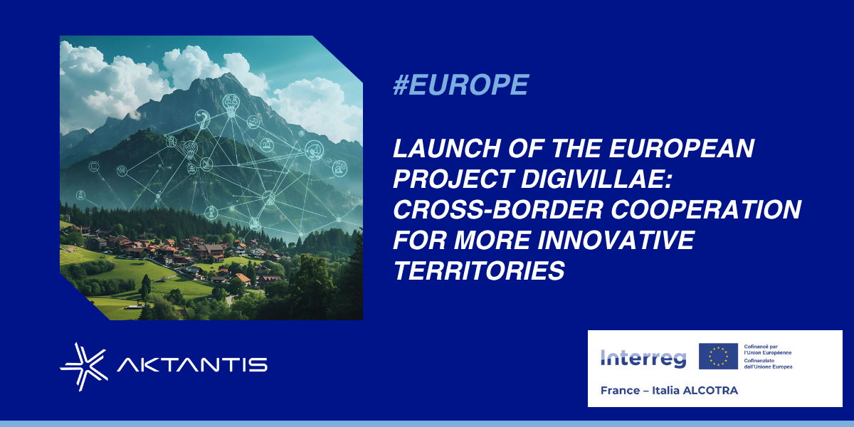AKTANTIS is a partner in the cross-border Digivillae project, funded by the European Interreg ALCOTRA 2021–2027 programme for a period of 30 months. Coordinated by Fondazione Piemonte Innova, the partnership also brings together Unione del Fossanese, ANCI Liguria and Unité des Communes valdôtaines Mont-Rose.